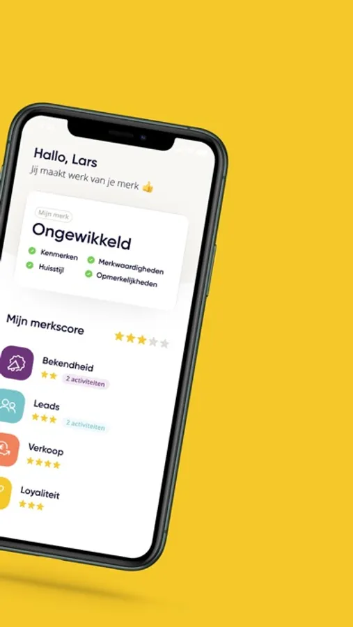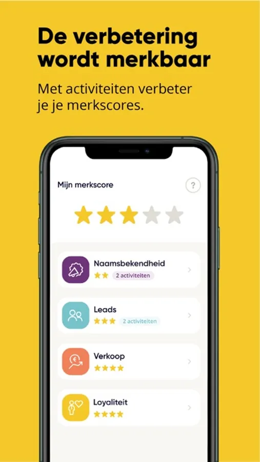 Is je merk opgebouwd? Tijd om het uit te bouwen! Ook dat maakt MerkZe je zo gemakkelijk mogelijk met 4 merkdoelen: bekendheid, leads, verkoop en loyaliteit. Je beoordeelt elk merkdoel door het een aantal sterren te geven. Zo weet je precies hoe je merk ervoor staat.