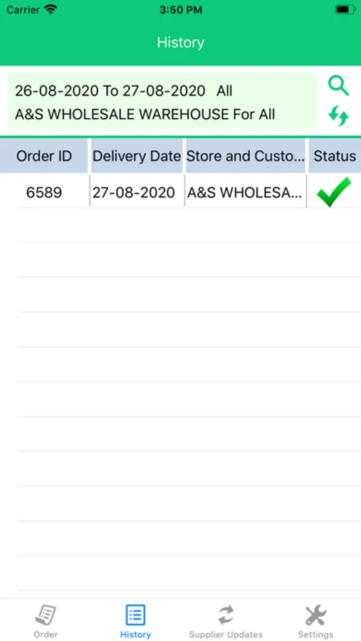The app also has cut-off times for when orders need to be placed. App also has historical orders placed prior.