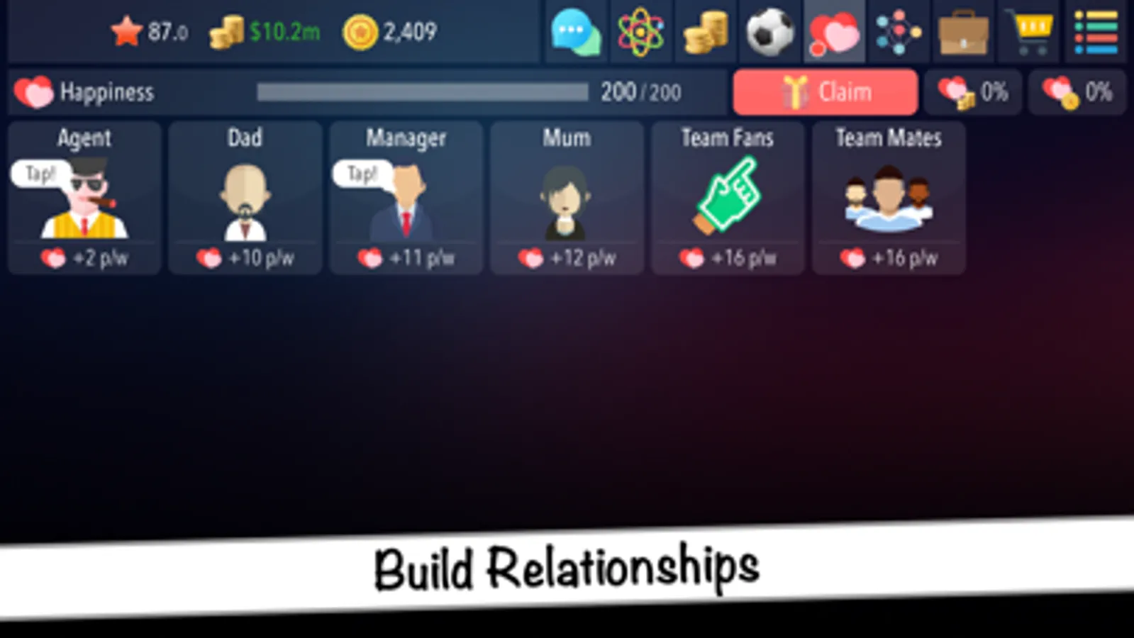 Build and manage relationships throughout your career. Build a rapport with your teammates and manager, look after your parents, perhaps get married and even have a kid!