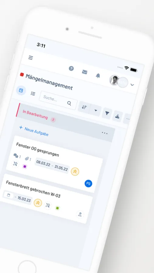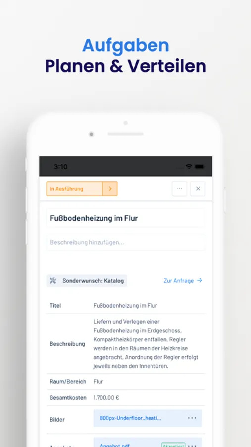 Immediately record new tasks and defects on mobile and assign responsibilities, such as people or trades. This saves you from having to follow up in the office and allows you to react immediately.