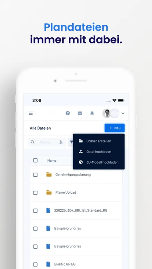 With the integrated plan management, you receive all updates and plan changes immediately via the app. Especially on the construction site, you always need the latest plan statuses. Whether 2D or 3D is irrelevant - even BIM files can be conveniently visualized via the app.