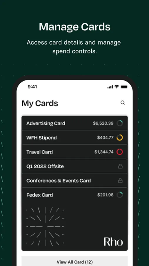 The Rho mobile app helps businesses manage their finances from anywhere. In the app, you can: