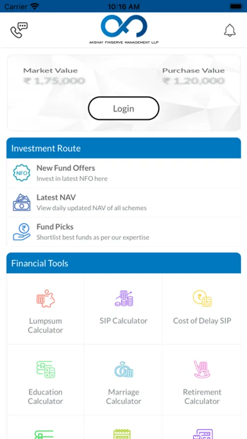 Akshay Finserve is one-stop shopping for all your Wealth Management needs. You can use this state of the art app to stay on top of your Complete Financial Portfolio with all assets: