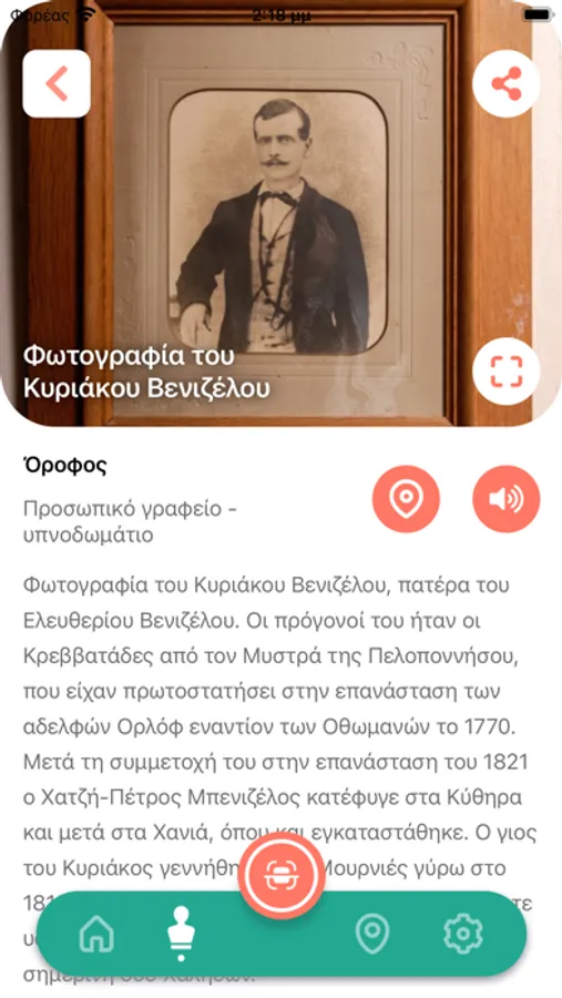 Εφαρμογή διαδραστικής ξενάγησης στην Οικία-Μουσείο Ελευθερίου Βενιζέλου (Χαλέπα, Χανιά) με στόχο τη διεύρυνση της εμπειρίας των επισκεπτών.