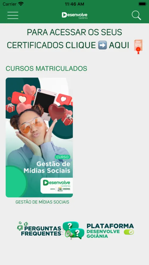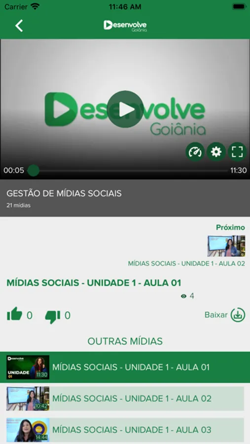 O app é uma plataforma online de cursos de capacitação e aperfeiçoamento do projeto Desenvolve Goiânia, oferecidos gratuitamente pela Secretaria Municipal de Desenvolvimento Humano e Social (SEDHS) da Prefeitura de Goiânia. O projeto oferece uma grande oportunidade para que os cidadãos adquiram conhecimentos e habilidades que podem ajudá-los em sua empregabilidade, aprendendo novas habilidades e melhorando as já existentes e mudando suas vidas para melhor, Os cursos fornecem uma educação abrangente em diversas áreas do conhecimento, equipando os alunos com as ferramentas necessárias para ter sucesso em seu campo escolhido. Desenvolve Goiânia é uma forma inovadora de oferecer educação e treinamento gratuito, e terá um impacto positivo no futuro de nossa sociedade.