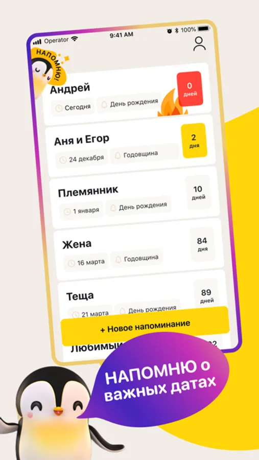 С “НАПОМНЮ” вы больше не забудете про дни рождения близких! Мы создали приложение, где все важные даты собраны в одном месте!