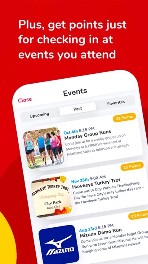 • Check-in at participating events to earn extra points