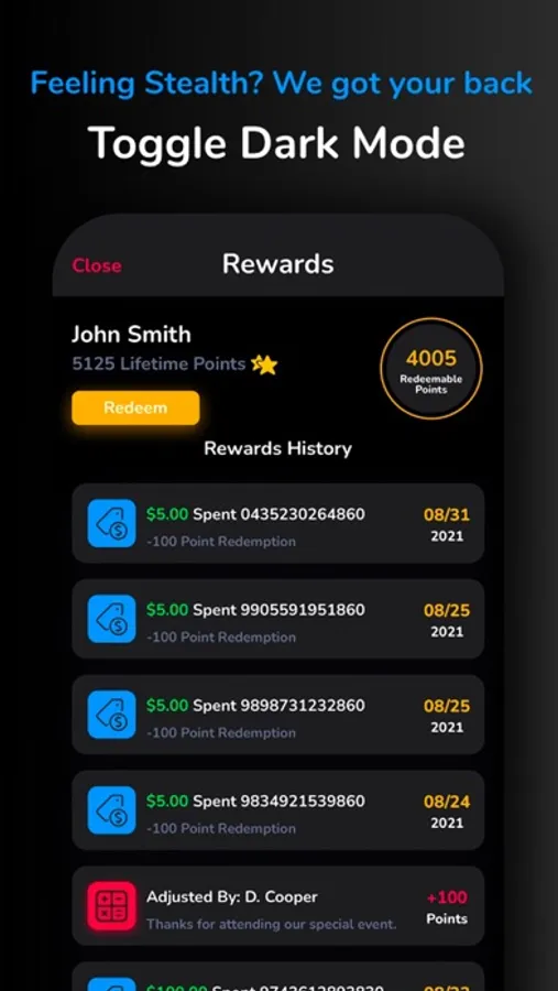 • Easily keep track of your points and redemptions right in your app