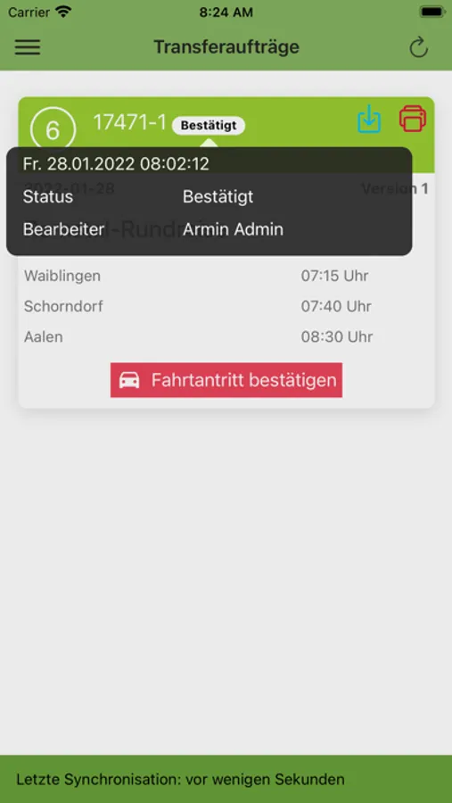 Die Telution Transferdisposition App dient der Erweiterung des gleichnamigen Systems und erlaubt Busfahrern, ihre Transferaufträge einzusehen, sie von dort aus anzunehmen und den Fahrtantritt zu bestätigen. Sie bietet weiterhin eine Übersicht über alle Stationen mit den dort ein- und aussteigenden Passagieren.