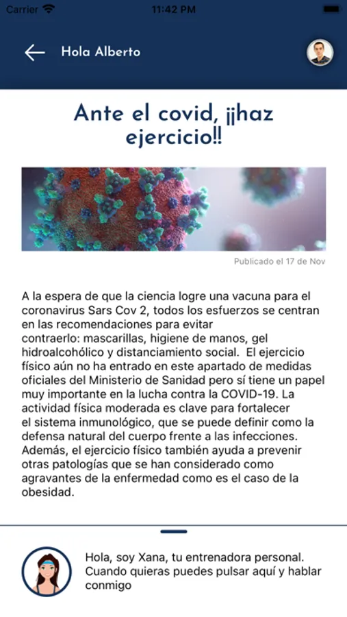 Un entrenador personal en la palma de tu mano. Xana, tu asistente virtual, te guiará de forma personalizada en tus entrenamientos según los objetivos previamente definidos para ti. Recibirás información y motivación, adaptada para ti, para cambiar hacia un estilo de vida más saludable, siempre con la ayuda de Xana.