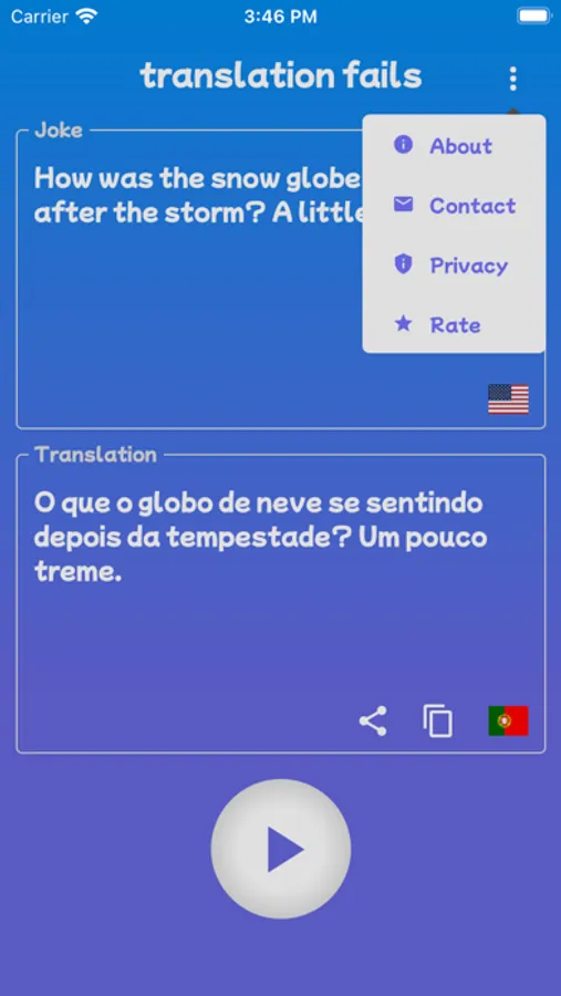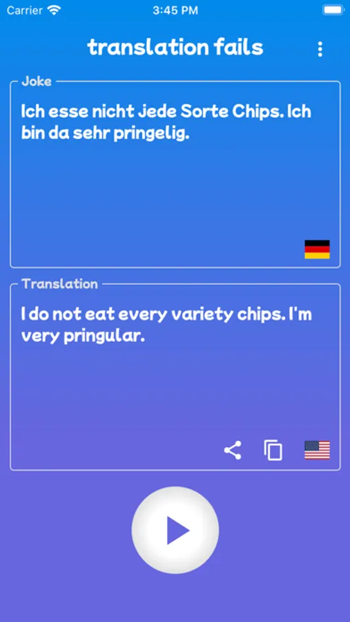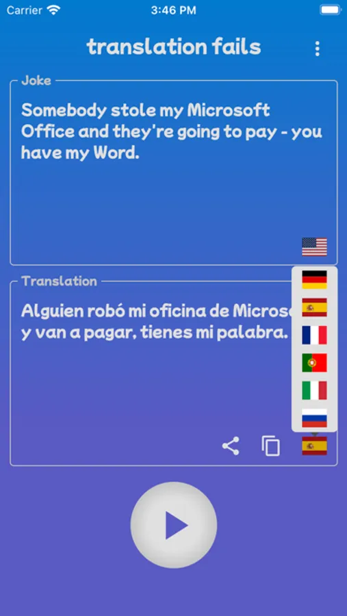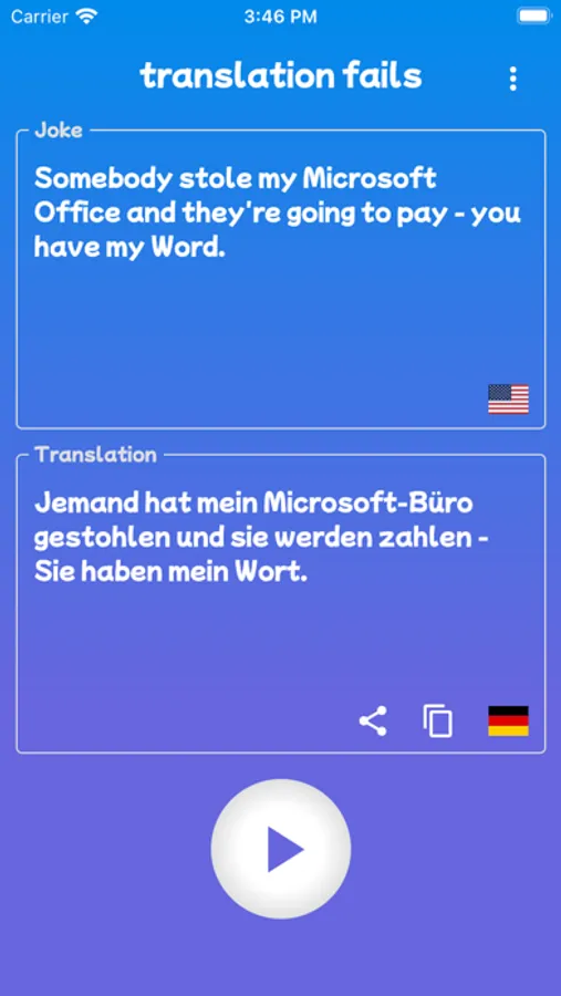Random jokes in different languages will be displayed and translated. Apparently the AI still has some limits here and generates some translators fails.