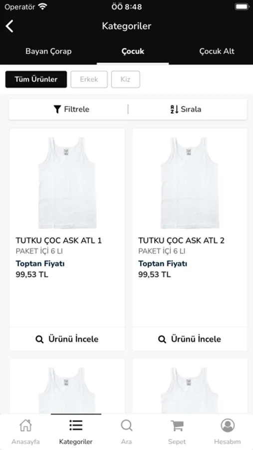 * Ürün kategorilerinde filtreleme yapabilirsiniz.