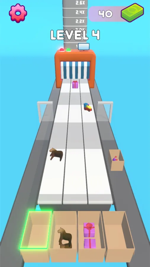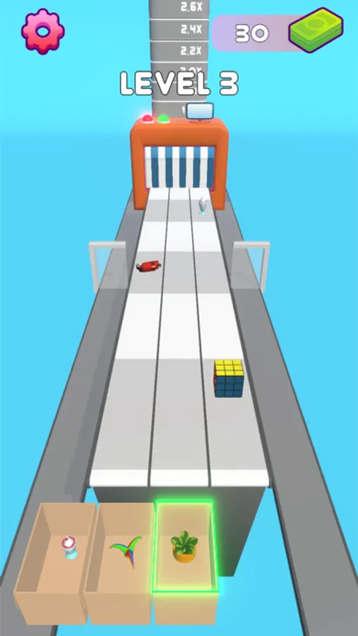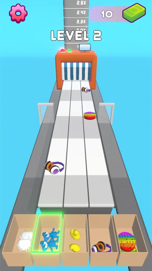 Try to earn as much money as possible by swiping the boxes left and right. Don't waste them by collecting different items in a single box!