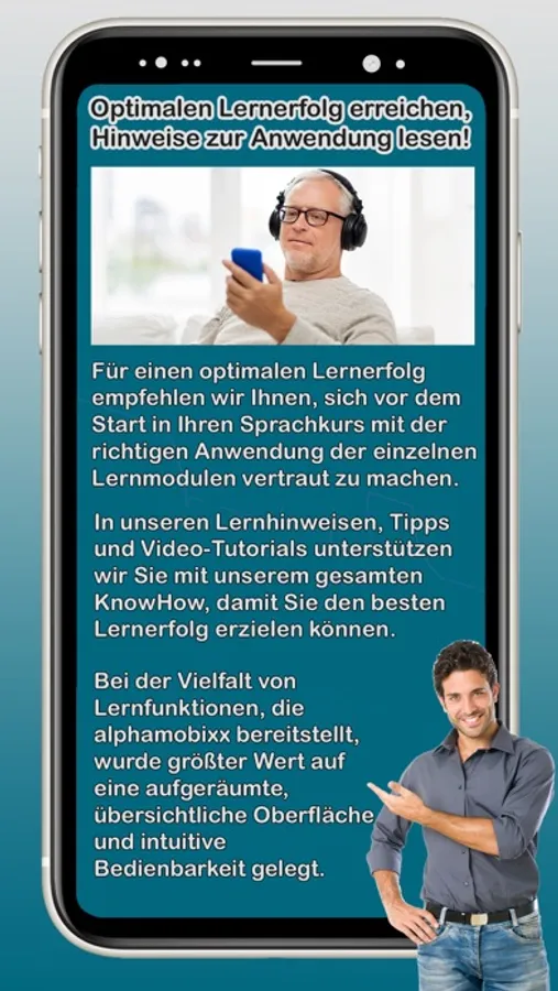 alphamobixx® wurde explizit für Smartphones entwickelt, und gehört zum Portfolio unserer innovativen Lernsoftware-Produktserie für das Erlernen und Perfektionieren einer Fremdsprache. Dieses erfolgreiche interaktive und audiovisuelle Selbstlernprogramm gibt Ihnen die Möglichkeit, bei freier Zeiteinteilung sowie ortsunabhängig, eine neue Sprache am Handy zu erlernen oder Ihre derzeitigen Sprachkenntnisse zu vertiefen sowie nachhaltig zu verbessern.