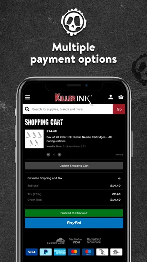 The Killer Ink app offers tattoo artists one-click access to our online store direct from their phone or tablet.