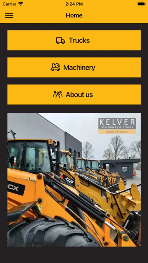KELVER Machinery & Trucks application is the optimal solution for customers looking for new or used construction machines such as: wheeled excavators, tracked excavators, mini excavators, backhoe loaders, loaders, dumpers, bulldozers, road rollers, tippers, trailers, semi-trailers, low-loaders and trucks.
