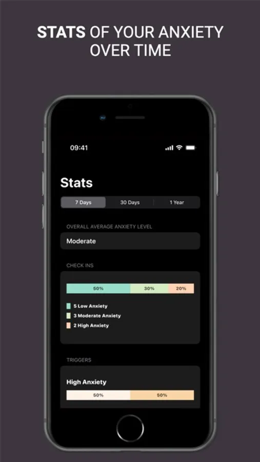Anxiety Tracker & Log allows you to track your anxiety over time using check ins when you are feeling anxious. You can record a moment of low, moderate or high anxiety along with the associated triggers and symptoms you are experiencing. You can add a note for extra context. You can add as many check ins each day as necessary and then view the stats to see a breakdown of your overall anxiety level across the selected time period. You can also view a breakdown by number and percentage of your recorded anxiety levels to allow you to see what kind of anxiety you are experiencing in general.