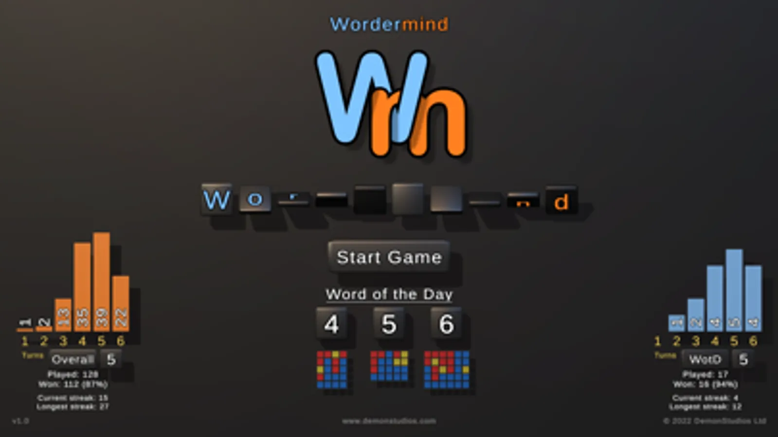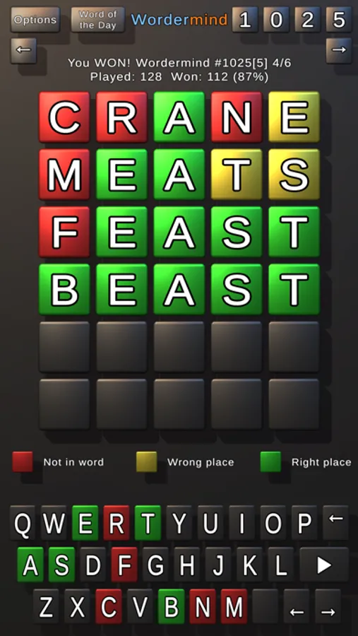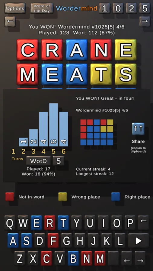 • Word of the Day for each mode - these are the same for everyone worldwide on that day!