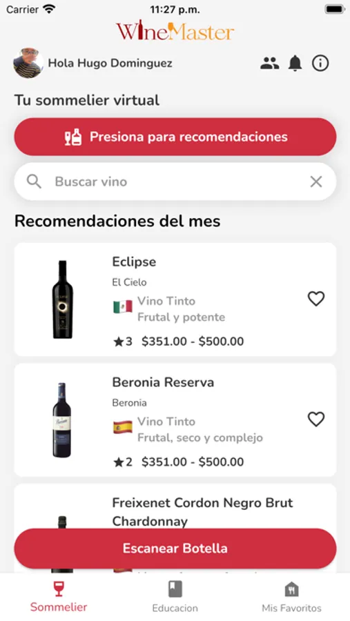 No importa si eres experto, explorador o principiante. WineMaster te podrá guiar en cualquier decisión relacionada con la selección del mejor vino para tu ocasión especial.