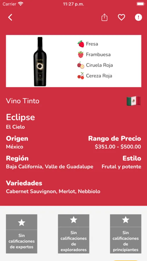 Podrás definir tu búsqueda por tipo de vino, país, región, precio, estilo, maridaje y uva, o bien, puedes escanear la etiqueta para proporcionarte toda la información que necesitas.