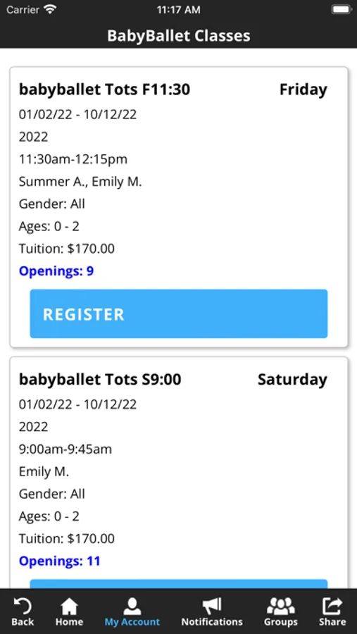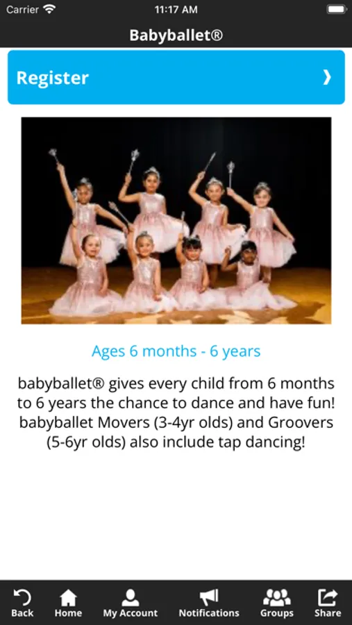 The RSD APP allows you to manage your account with ease, register for classes, parties, and special events. You'll also receive important notifications about class changes, registration openings, special announcements, and upcoming events. It also gives you access to 'view resources' - videos , music and information from your child's class so they can practice at home.