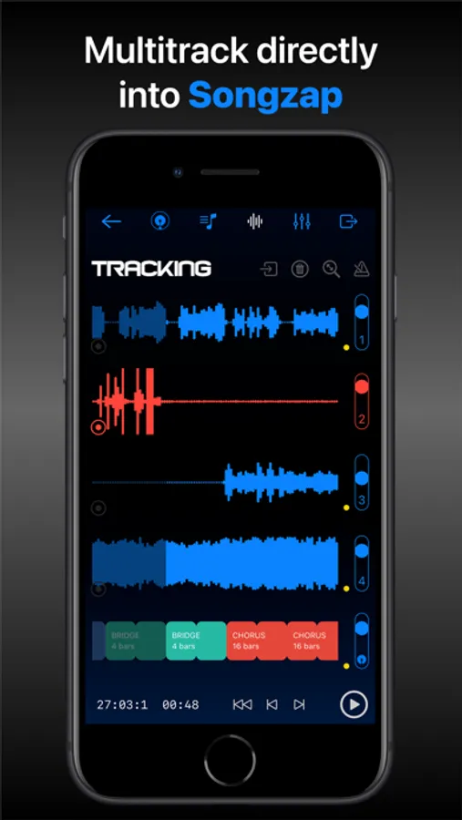 • Capture your vocals and instruments with Songzap’s multi-channel Tracking feature.
