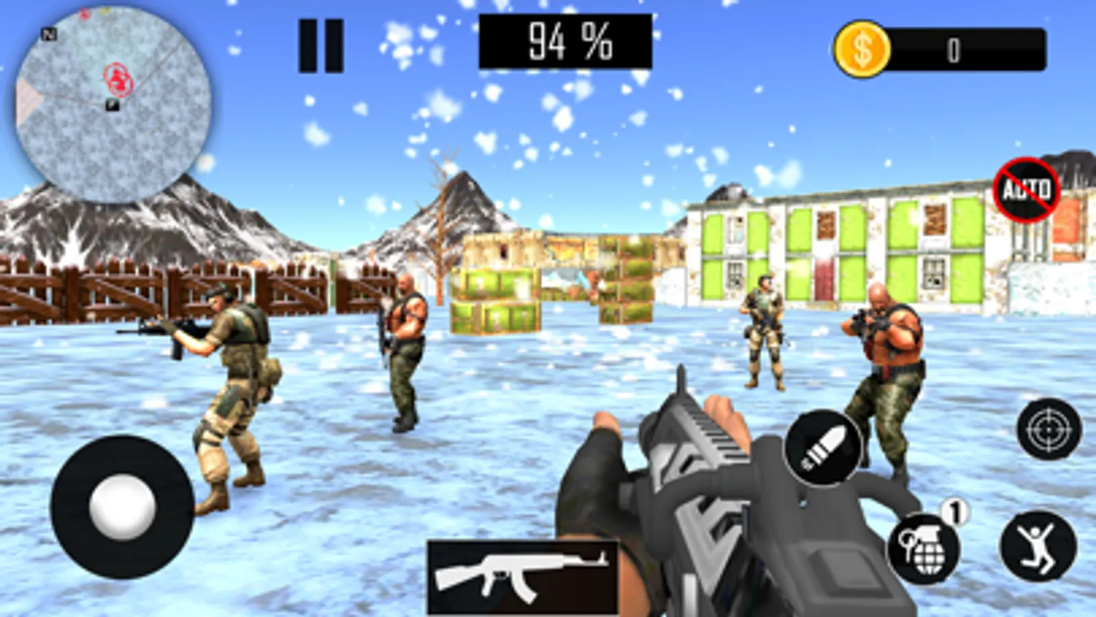 Jump into the snowy mountain battlefield and start firing enemies. You have to fight for survival in ten challenging levels. So, stay in the safe zone, and survive till the battlefield is cleared from the enemy squad. During a counter-terrorist attack and special ops, freely fire on the enemy squad in the desert battleground. Clear desert battlefield from the enemies and enter the industrial area. Aim and shoot terrorist squad in an industrial environment by showing your fps shooter skills. Play gun games for free and fight enemies till the last man standing, become a battleground survival hero.