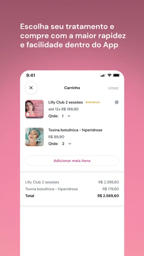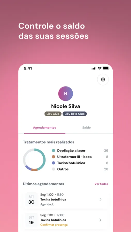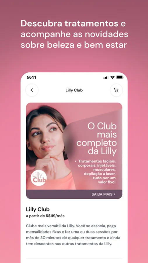 Com o Lilly app você pode acompanhar todas as novidades sobre beleza e bem-estar. Além disso, você pode agendar seus tratamentos e acompanhar todas as sessões marcadas.