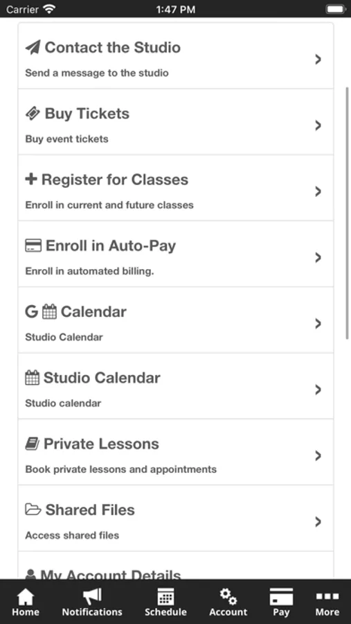 The Dare 2 Dance app allows you to manage your account with ease, see your child's dance schedule, access all the info you need at the touch of a button, pay termly fees, log absences, have access to class music and videos and so much more! You'll also receive important notifications about class changes, registration openings, special announcements, and upcoming events / competitions / concerts.