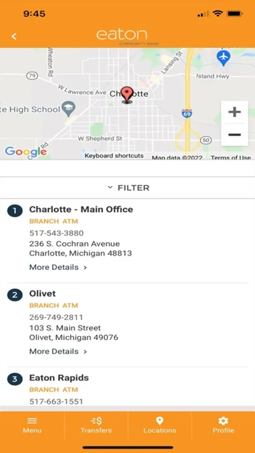 - Find nearby Branches and ATMs using the device’s built-in GPS. Additionally, you can search by zip code or address.