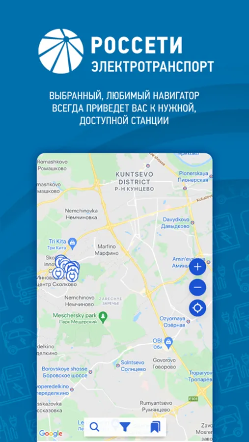 - Удобный поиск на карте свободных зарядных станций;