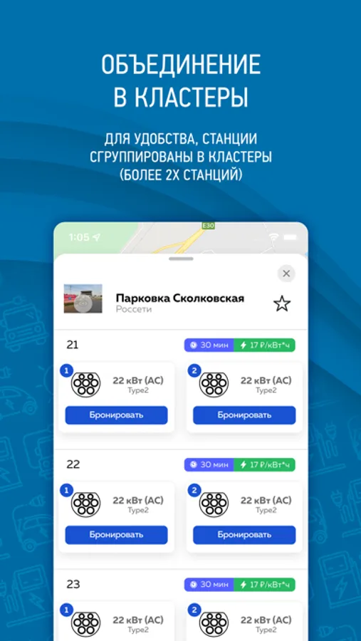 - Бронирование зарядной станции пока Вы в пути;
