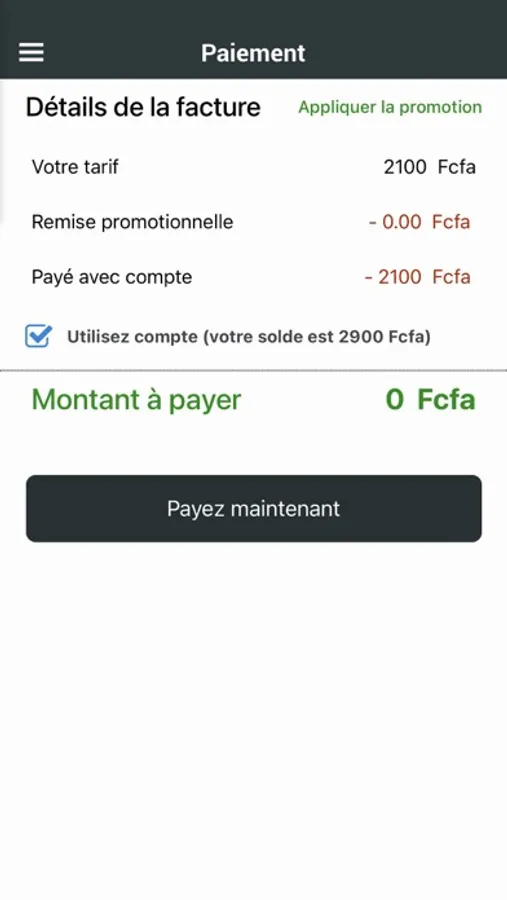- Le client peut payer en espèces ou à partir de son compte rechargeable et bénéficier de réduction