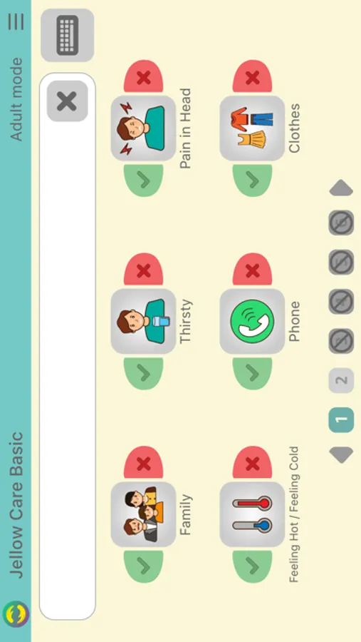 Jellow Care provides predefined expressive sentences that can be used by users to communicate during their stay at the hospital or during their recovery at home. Moreover, this application allows a simple yes or no, single-touch interaction which makes it easier to communicate.
