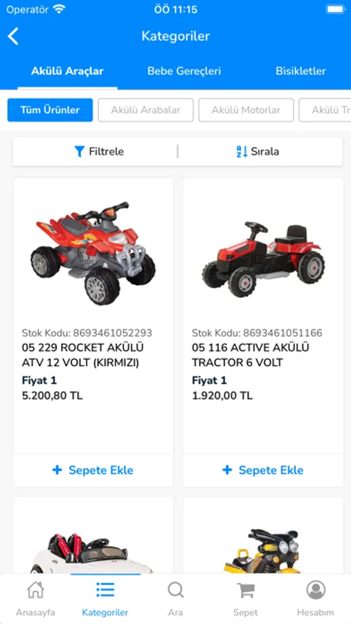 * Ürün kategorilerinde filtreleme yapabilirsiniz.