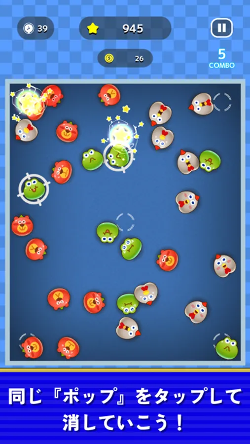 たくさんのポップを巻き込むことで、更に高得点を狙いましょう。