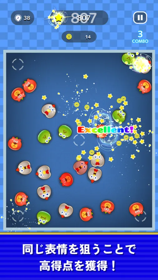 同じ表情のポップを狙うことで、高得点を狙うこともできます。