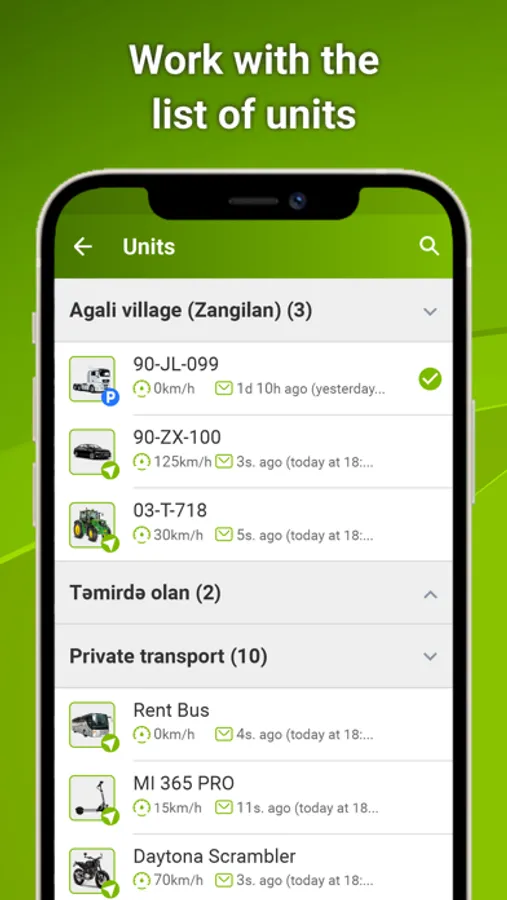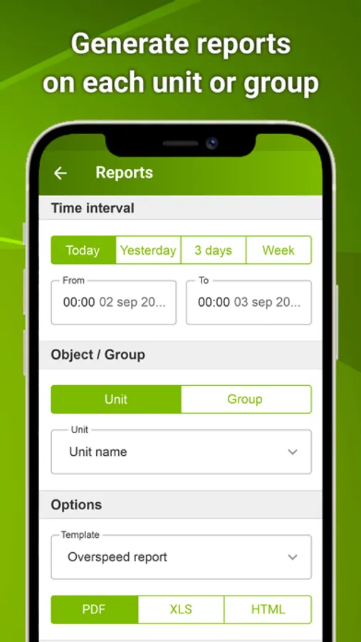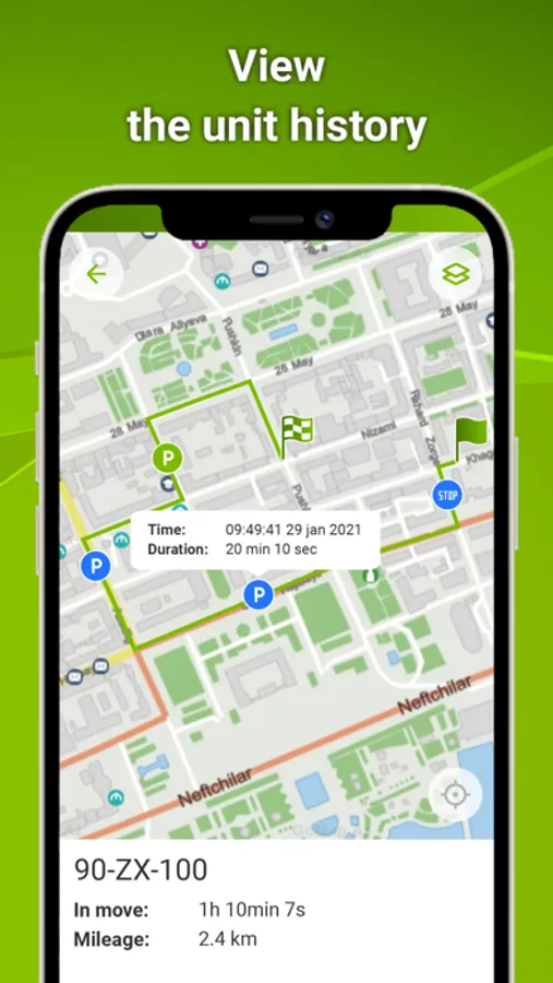 In the detailed view of information, you can see the main monitoring parameters (speed, address, location, sensors), the application allows you to generate reports, get statistics on driving quality, receive notifications about various events, build tracks. In addition, the application allows you to receive push notifications to your phone. Convenient navigation and an intuitive interface will help you find the necessary information on the desired monitoring object in a couple of clicks.