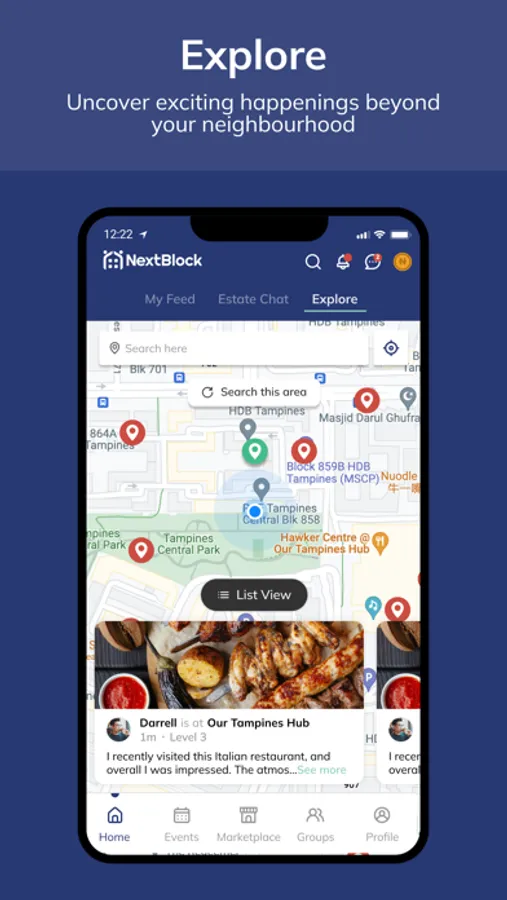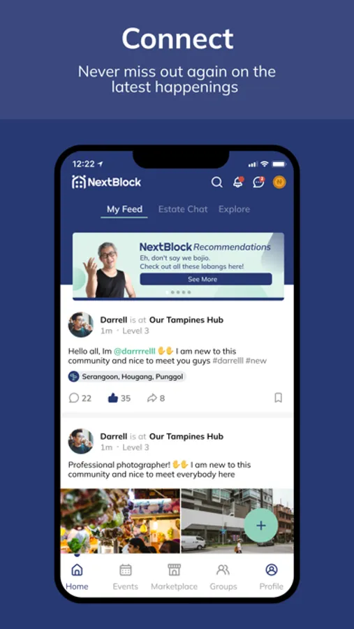 Connect with your neighbours. Find out the latest happenings and updates within your estate. Listing pre-loved Items for sale. Find recommendations for businesses near you. Join groups to connect with neighbours. The estate gets more fun and meaningful with NextBlock.