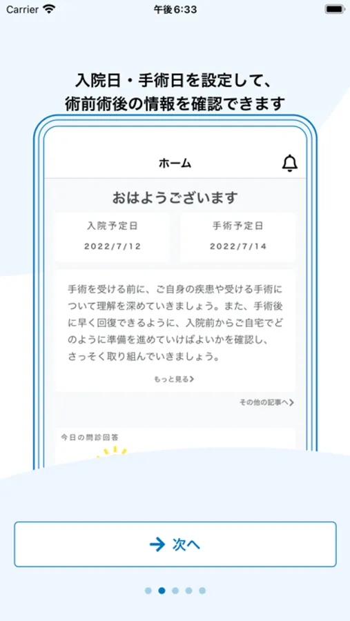 入院に向けた準備や、退院後の過ごし方に関する情報がアプリに入っているので、自分のペースで手術や退院後の暮らしを理解できます。