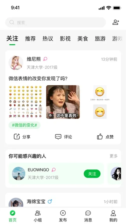 校友网,大学生社区软件。在这里,您可以搜索并关注同校(同城)校友。分享好看的电影,好玩的游戏,兼职,实习,职场的经验。还可以加入各种各样好玩的小组,一起讨论哦。