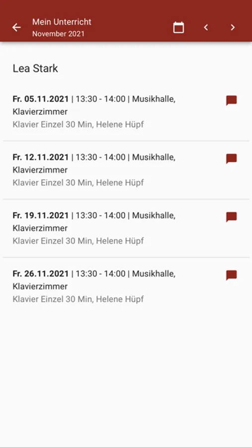Alle Funktionen zum Austausch von Nachrichten zwischen Lehrkräften, Eltern, SchülerInnen und der Musikschule setzen keinerlei Kontaktinformationen voraus. Die Übermittlung von Nachrichten erfolgt über eine App-interne ID. Zum Chat und Nachrichtenaustausch sind keine E-Mail-Adressen oder Handynummern erforderlich!