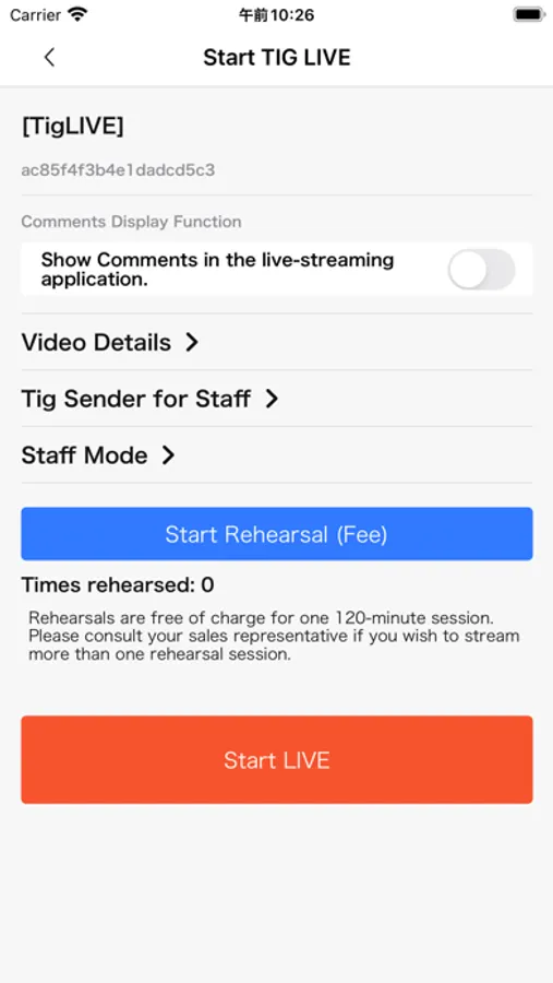 An account with the interactive video streaming service Tig is required for LIVE streaming.