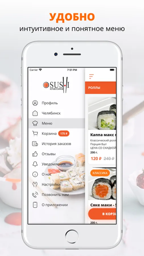 Воспользуйтесь удобным приложением для заказа еды «Суши Классика».