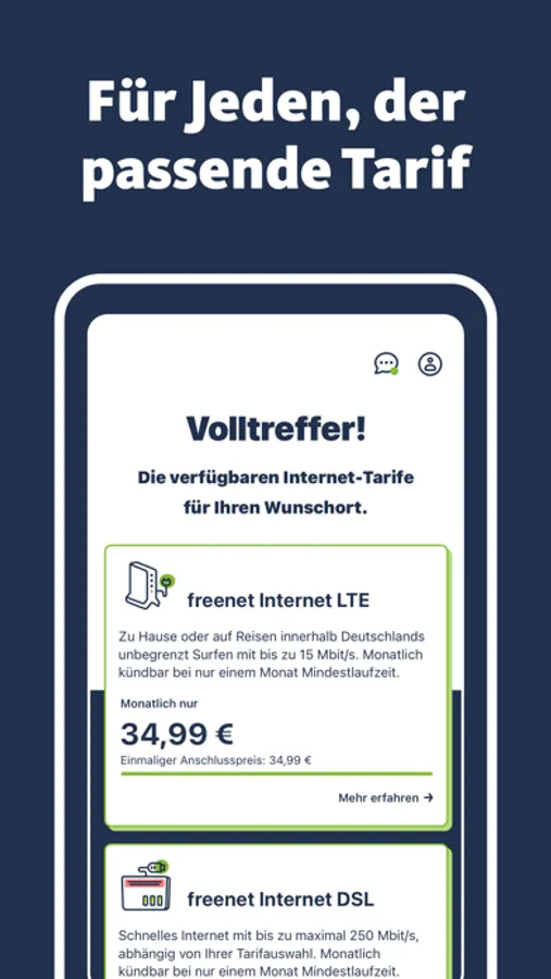Gleich in der App den Verfügbarkeitscheck machen und wir zeigen Ihnen, welches Internet für Sie verfügbar ist.