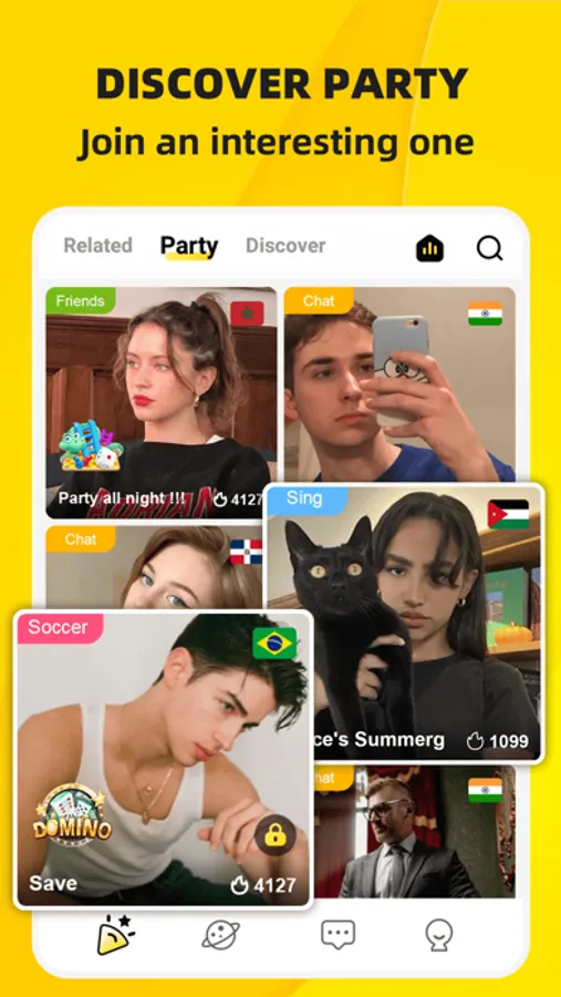 There are many public rooms with different topics. Choose the room according to the topic, then you will find friends with the same interests. Meanwhile, you will feel free to talk with anyone without any stress.