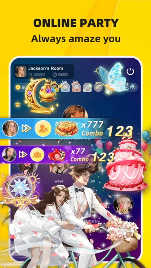 Ahlan TopOne is a best place for you to have online party with friends. Karaoke, wedding, or birthday parties, choose any theme you like. Great chance to surprise your friends with amazing gifts like cake, rose etc.