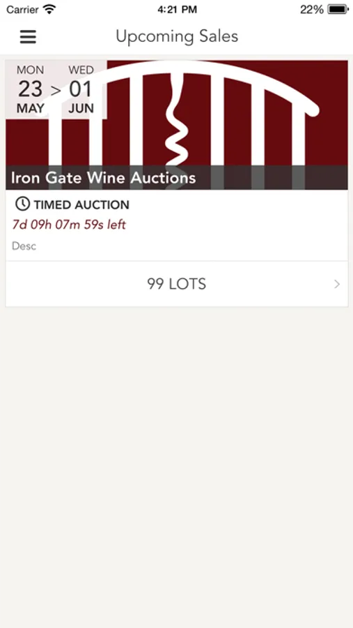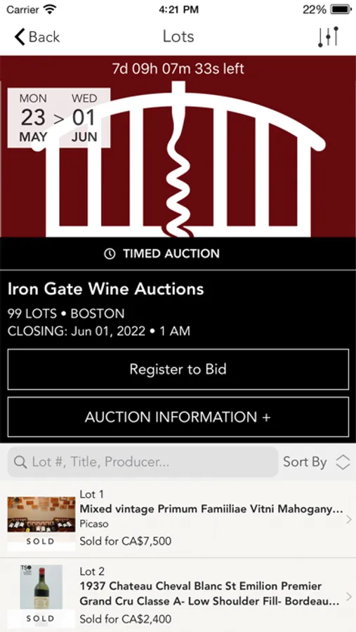 Bid on vintage wine and rare spirits with the Iron Gate Auctions app for your phone and tablet. View all upcoming and past auction catalogues. Search, filter and find the rarest wine and spirits you are looking to acquire. All from the palm of your hand.