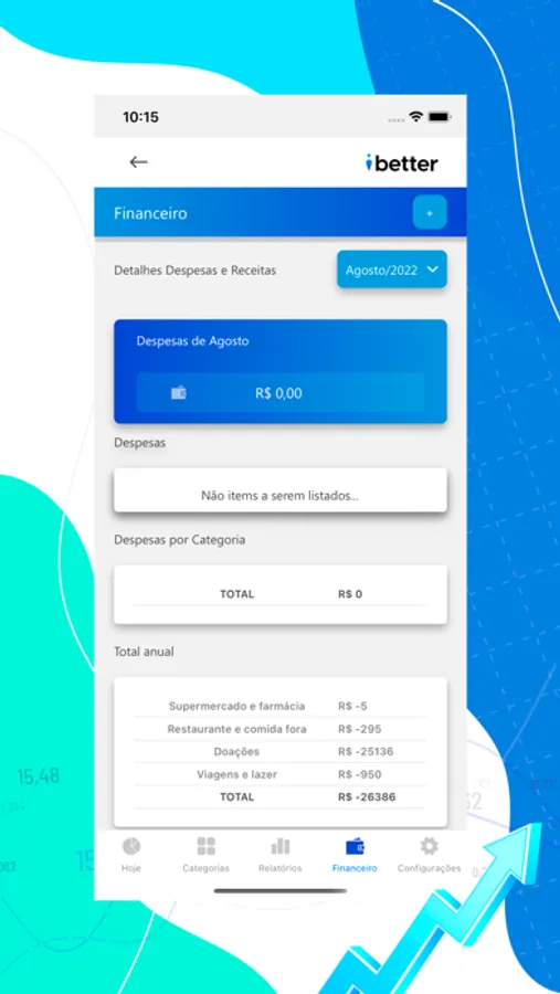 O app também permite a gerência das finanças pessoais, através de uma tela bem intuitiva, onde é possível classificar os apontamentos de uma maneira simples e prática.