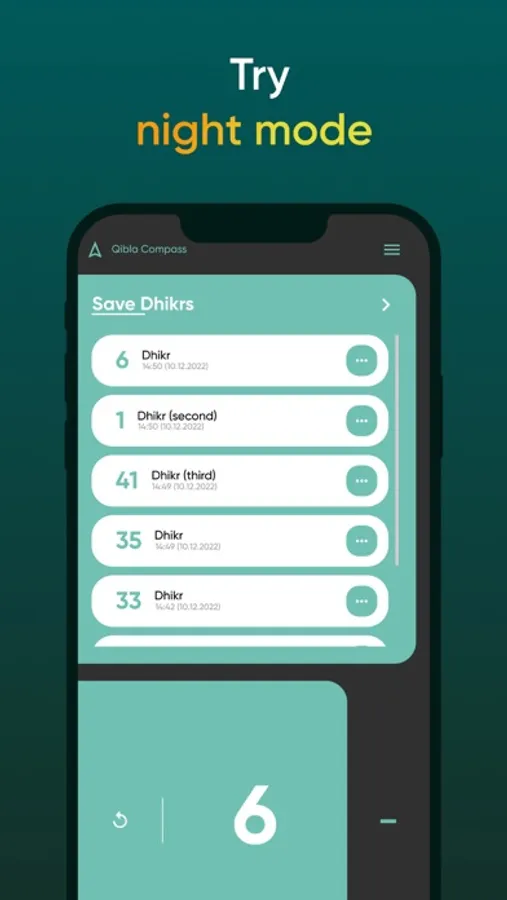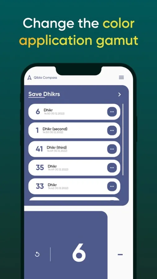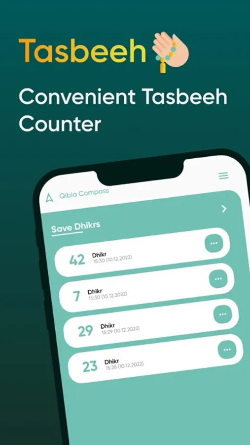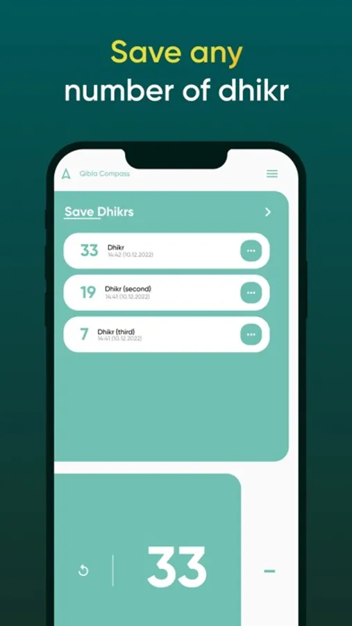 4. Ability to save any number of Zikr (saves along with the current date)